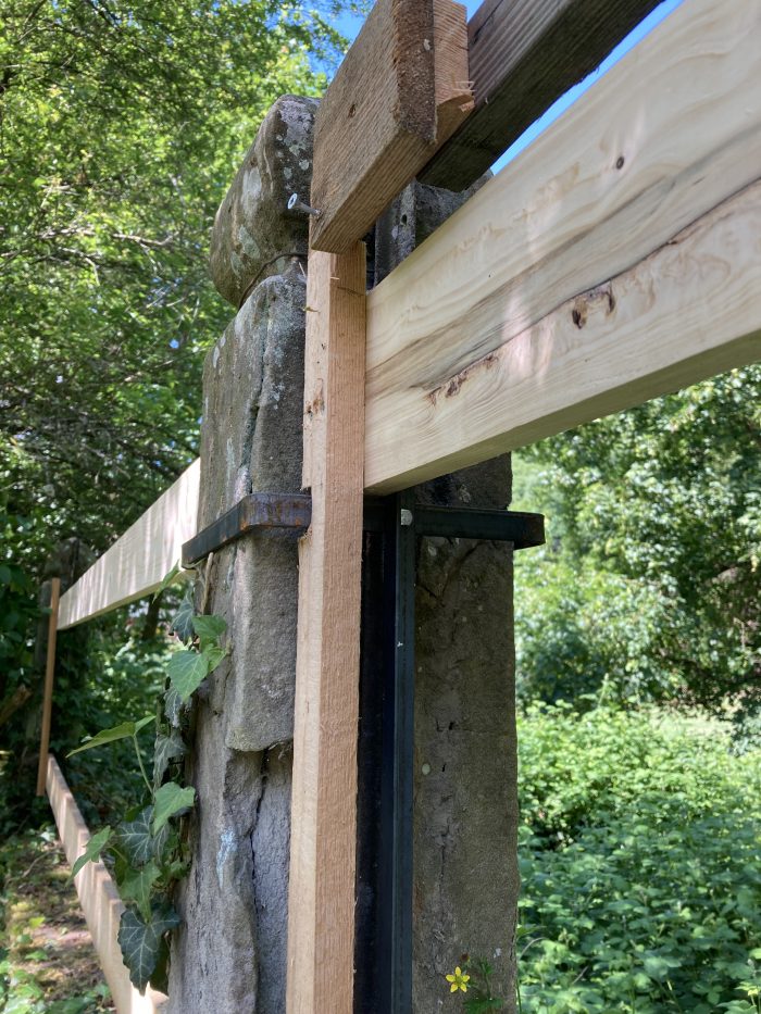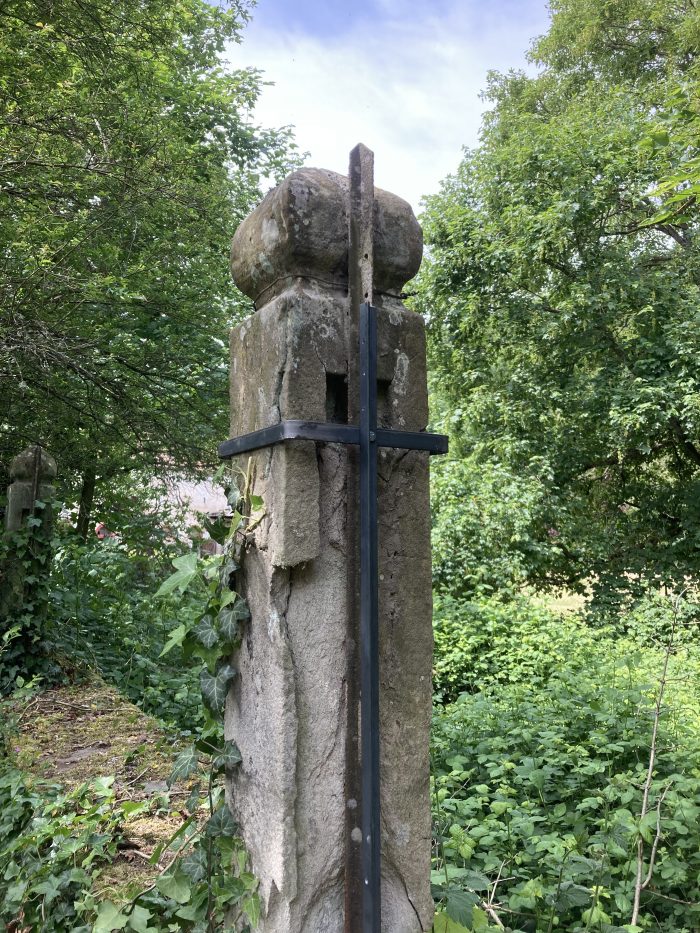 die sehr alten und teilweise gebrochenen Sandsteinpfosten mussten vorsichtig saniert/behandelt werden